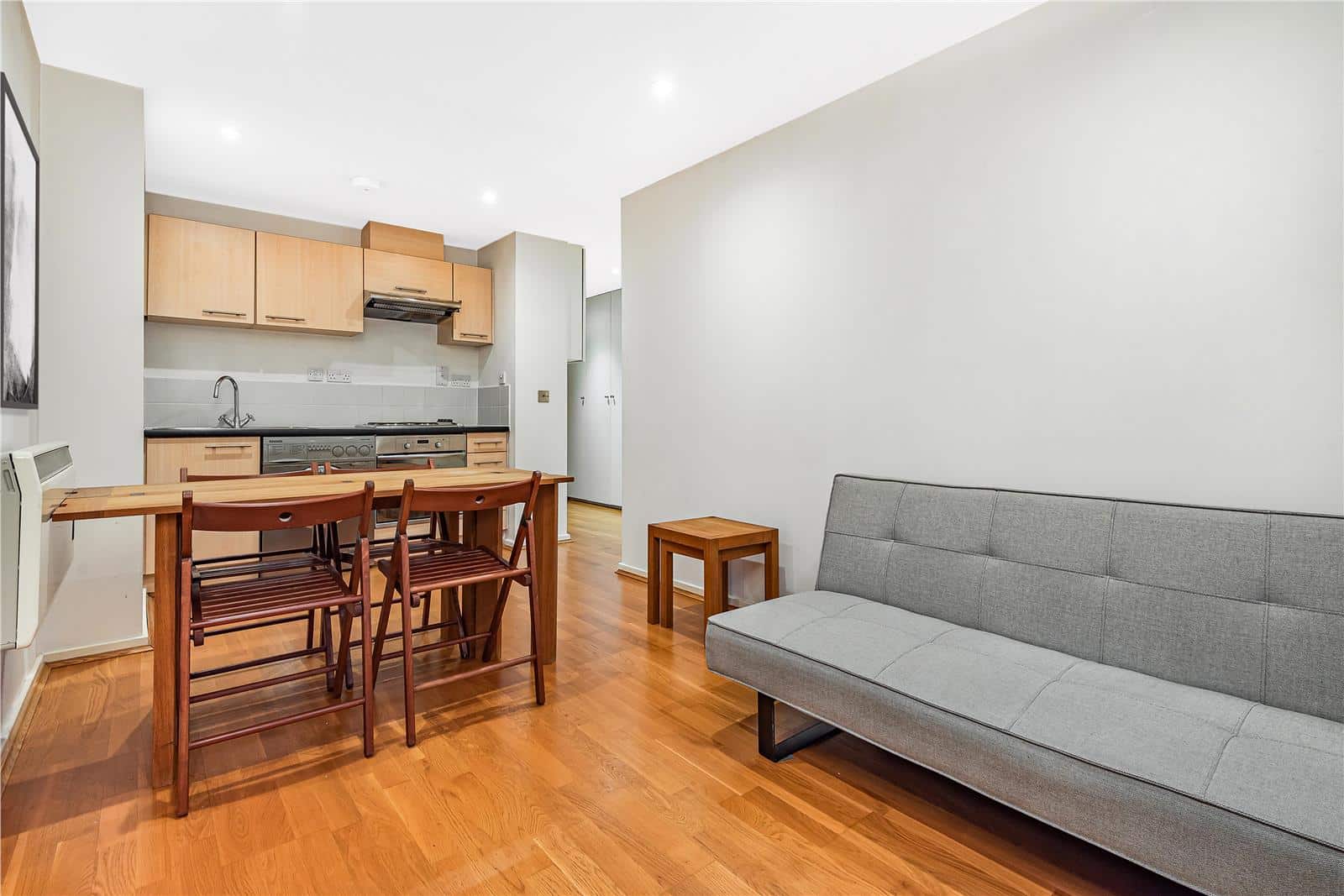It has wooden flooring throughout and has an open-plan kitchen/reception room, a double bedroom and a great bathroom with shower, plus plenty of built-in storage.