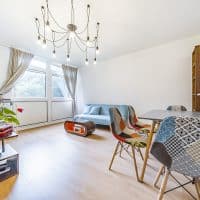 Great decor (flat comes fully furnished) plus wooden laminate floors throughout.