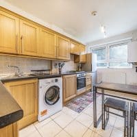 Light and spacious fully equipped 2 double bedroom ground-floor Southfields flat with large separate eat-in kitchen and lounge, plus a balcony overlooking green space.
