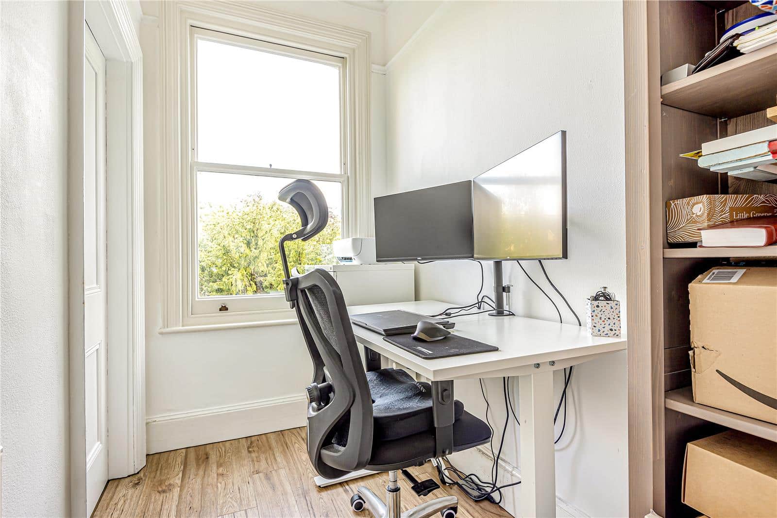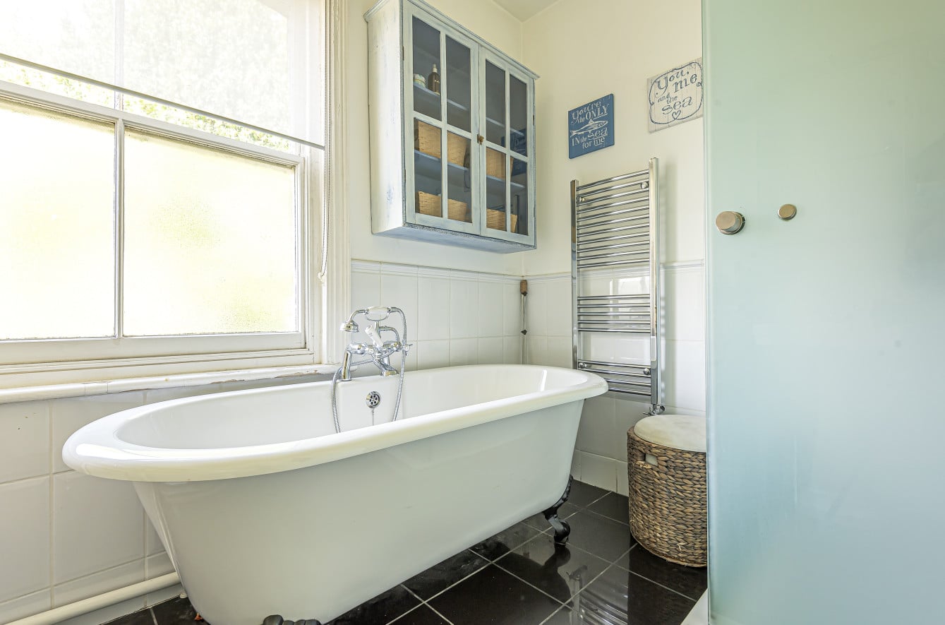 There are three large bedrooms plus a spacious lounge with a large south-facing window, as well as a separate office if you're needing to work from home. The bathroom comes with a roll-top bath plus a separate shower and toilet.