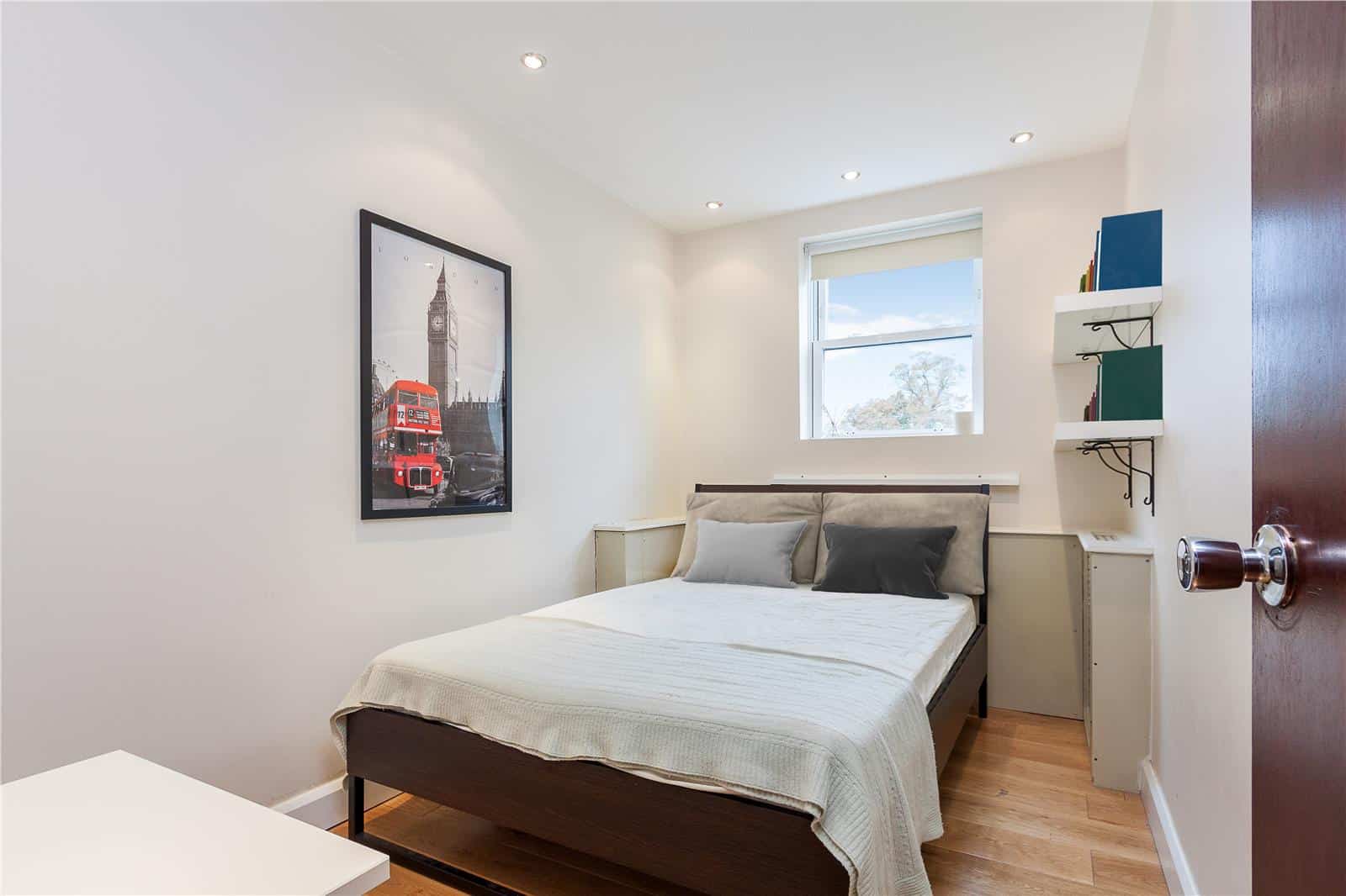 The flat is light and spacious with large south-facing windows and comprises: a reception room with oak wood flooring throughout, an open plan contemporary fitted kitchen with all appliances, three double bedrooms and a luxury bathroom. It is on the top (third) floor of a private block, and there is a lift.