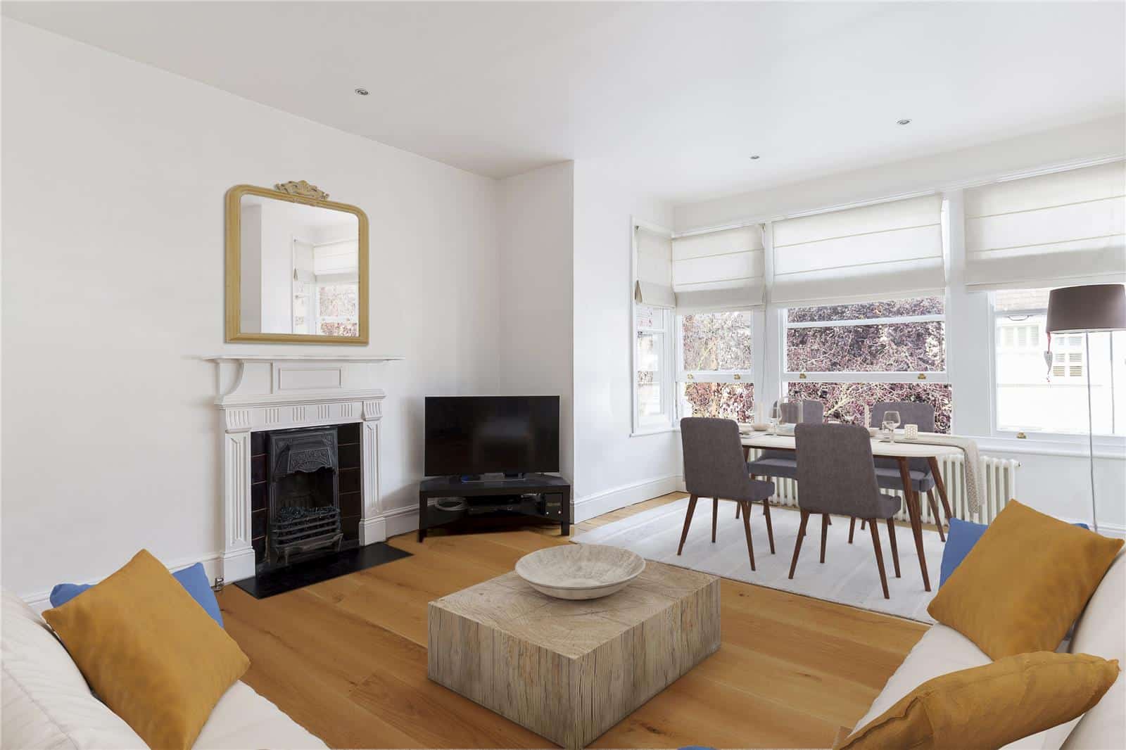 - Wooden flooring in lounge