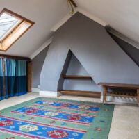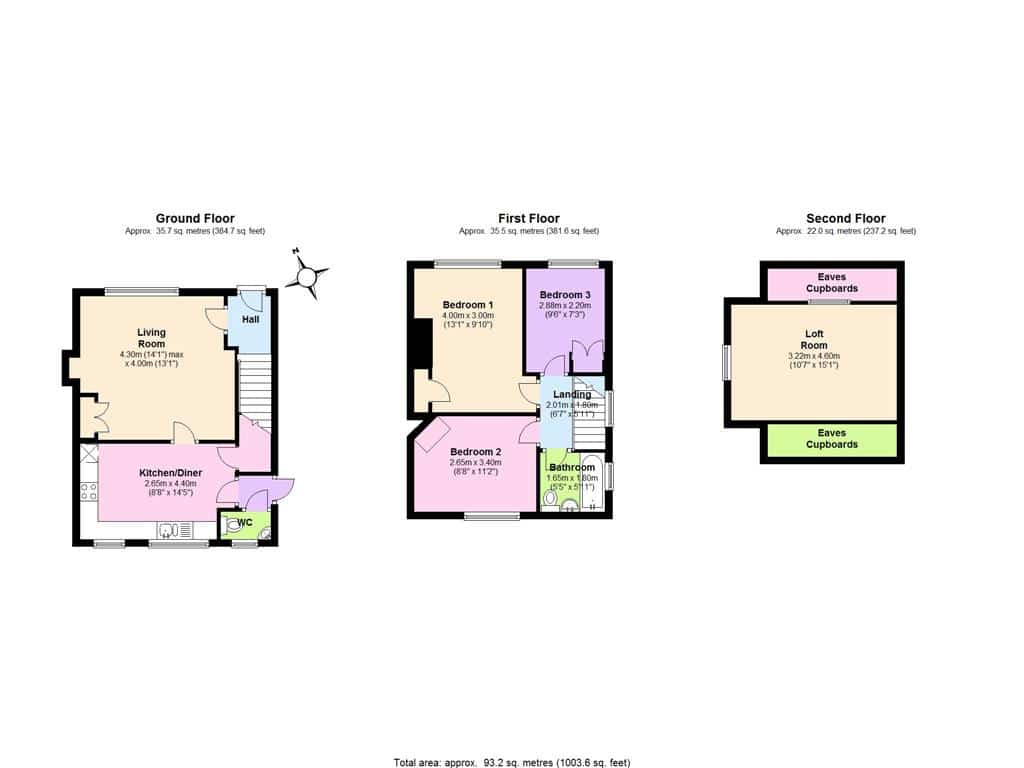 On the first floor there are three bedrooms and a bathroom. There is also an additional carpeted loft room with windows accessed via a pull-down ladder (useful for storage).