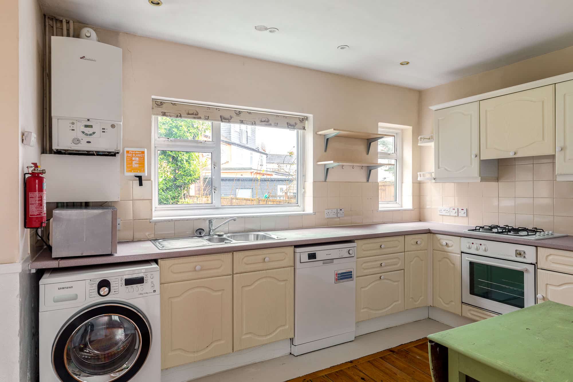 On the ground floor there is a kitchen equipped with a dishwasher and other appliances, and there is a separate lounge and downstairs WC as well as access to the rear garden.