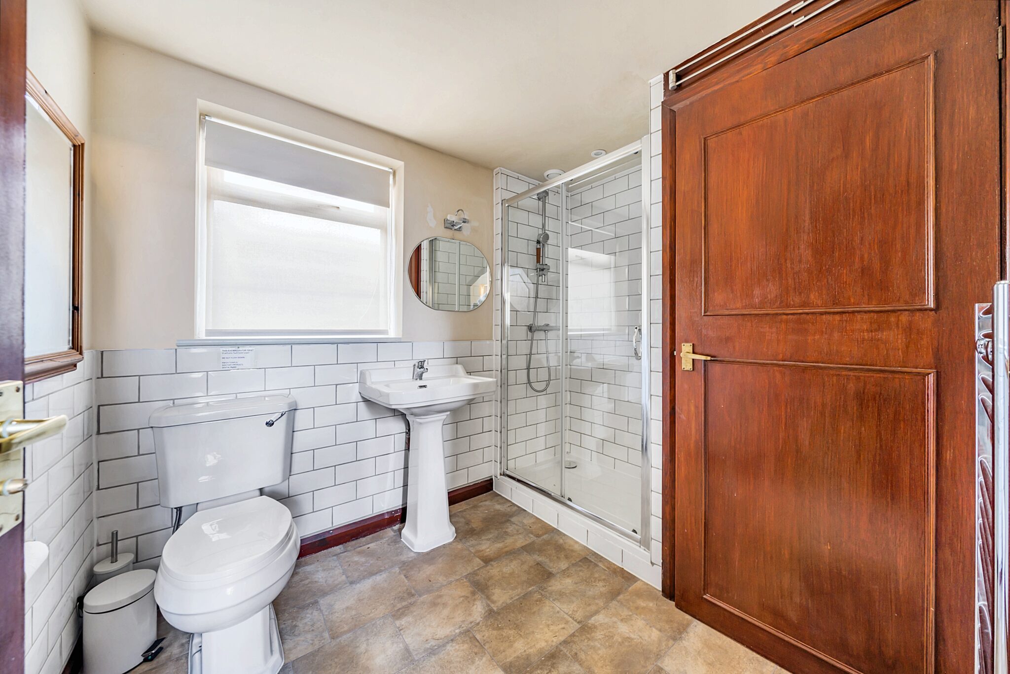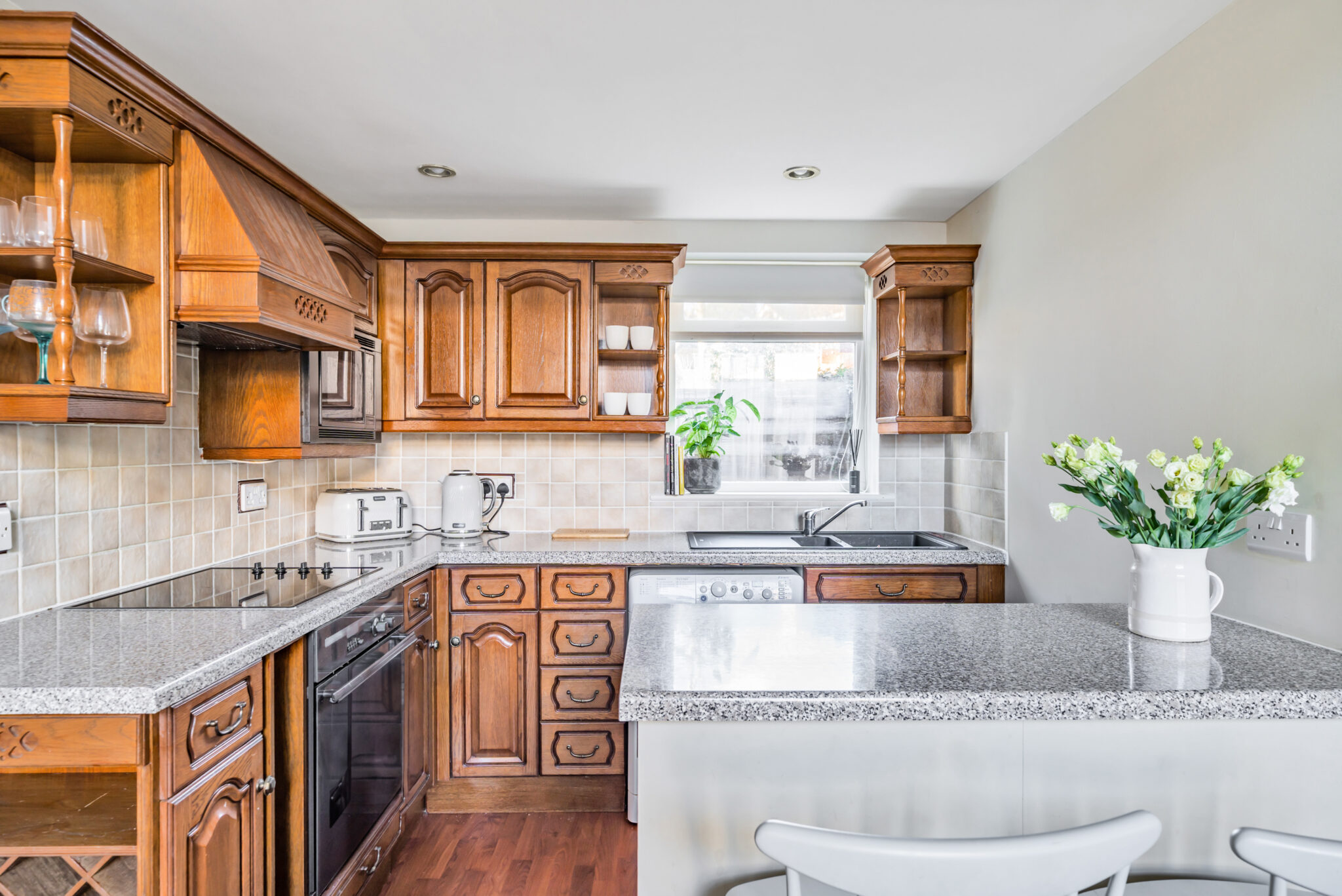 The property is alongside a larger house, but is secluded and accessed directly via a separate entrance. It is on a private housing estate close to Esher town centre.
