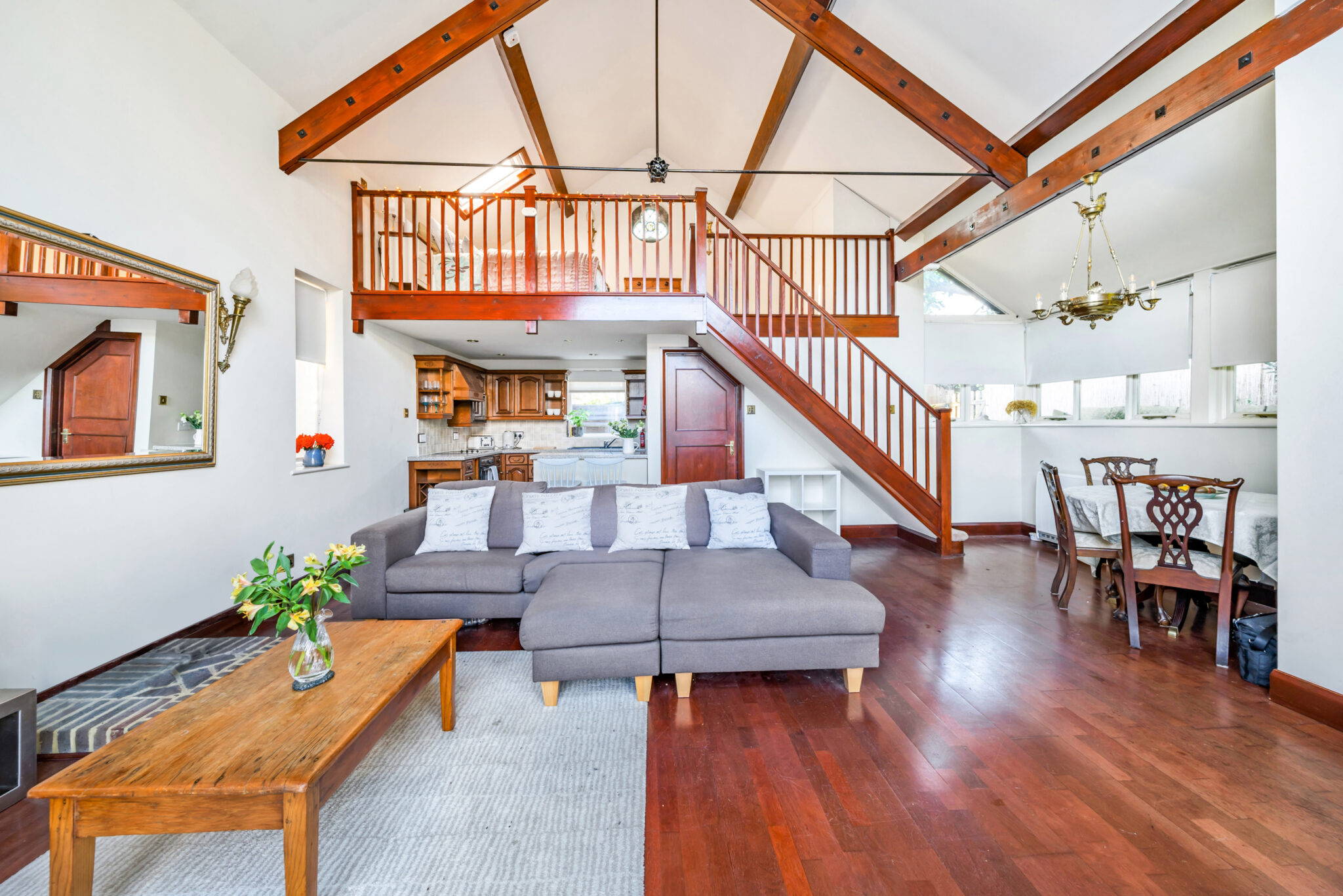 The property is a freestanding studio cottage and feels a bit like a house as it doesn't share walls with other properties. It is really light and bright due to a double-height living space and it has windows on every side so is flooded with natural light, especially in the mornings.